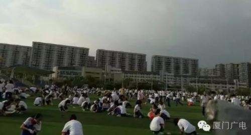 厦门二中的许多教师、家长、同学都齐齐来到操场上捡碎玻璃渣。由于玻璃渣太细碎了,所以只能仔仔细细一个个用手捡。