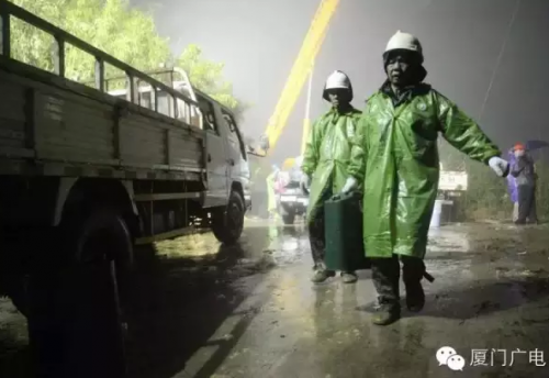 今日清晨5时02分,通过国网福建电力200多名电力职工冒雨今夜激战抢通厦门电铁牵引变外部供电。